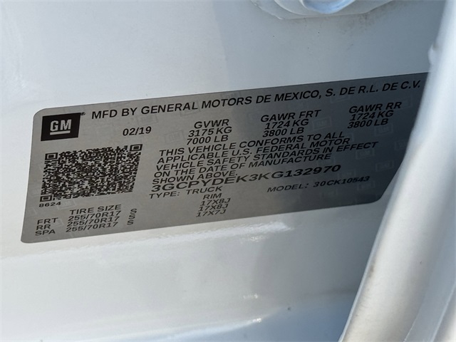 - VIN : 3GCPYDEK3KG132970