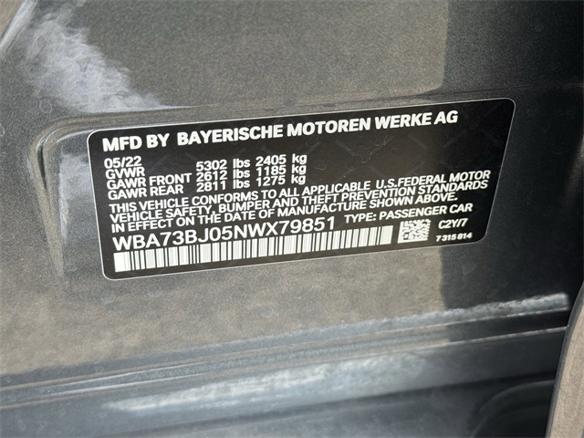 - VIN : WBA73BJ05NWX79851