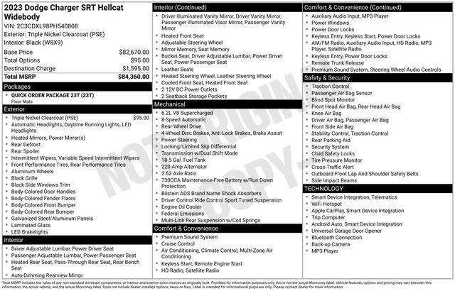 Don't miss the opportunity to make this exceptional 2023 Dodge Charger SRT Hellcat Widebody your own. Visit our showroom today and let us guide you through the seamless process of bringing this automotive masterpiece home. Prepare to be captivated by the sheer power and elegance that define the Charger Widebody.