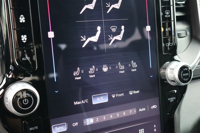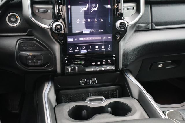 Inside, you'll find premium leather-trimmed bucket seats, a full-length upgraded floor console, and a 12-inch touchscreen display with the latest Uconnect 5 navigation system. The dual wireless charging pads and 115V power outlet make it easy to keep your devices powered up on the go.